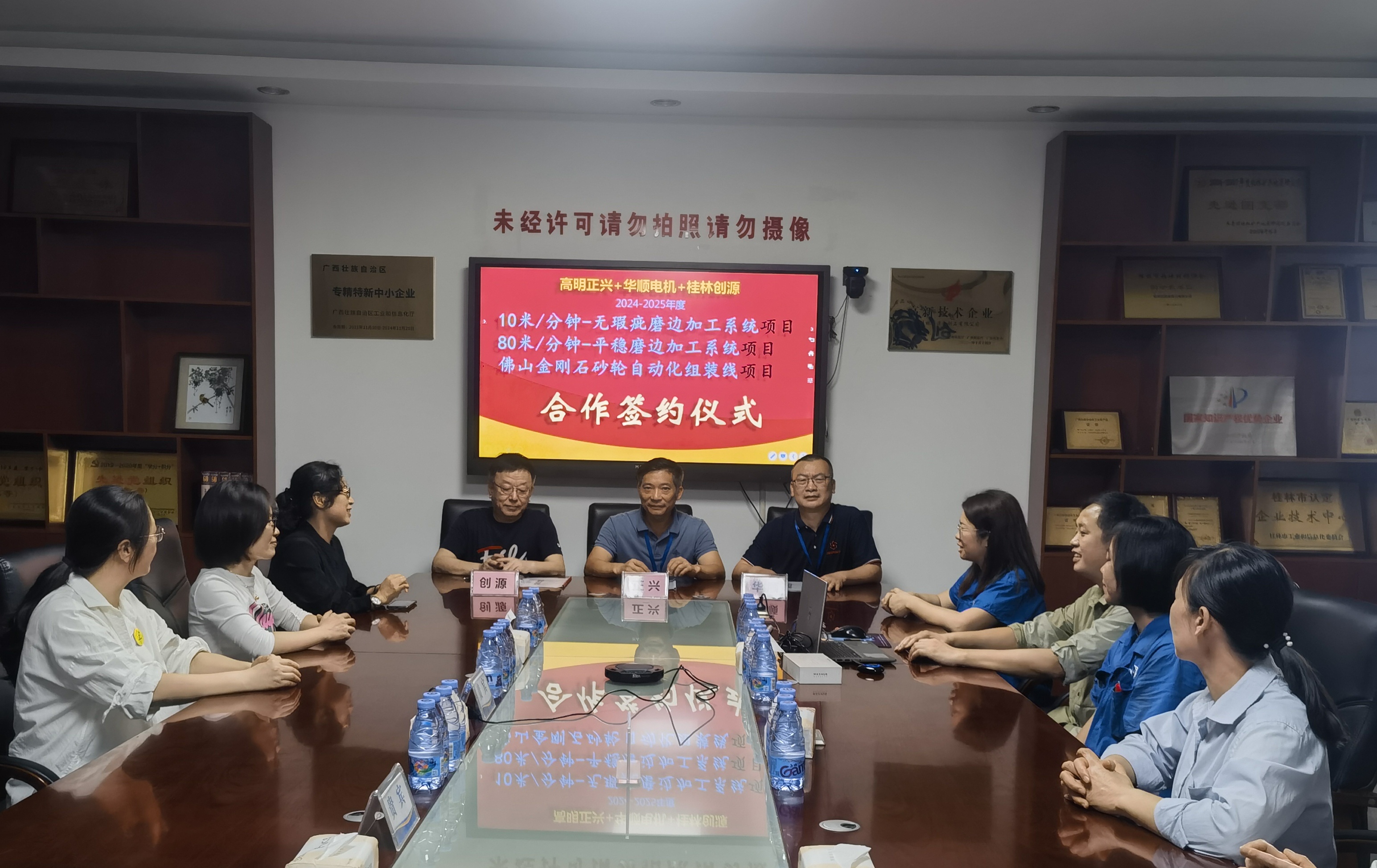 2024年5月,創(chuàng)源公司、正興公司、華順公司三家業(yè)內(nèi)領(lǐng)軍企業(yè)齊聚高明正興公司(5月17日)和桂林創(chuàng)源公司(5月23日),就2024年上海玻璃展會(huì)進(jìn)行了深入分析和總結(jié),并對(duì)行業(yè)未來(lái)走向進(jìn)行了前瞻性的探討。在友好的交流與討論中,三家公司達(dá)成共識(shí),擬定了多項(xiàng)戰(zhàn)略合作計(jì)劃,旨在共同推動(dòng)玻璃加工技術(shù)的創(chuàng)新與發(fā)展。